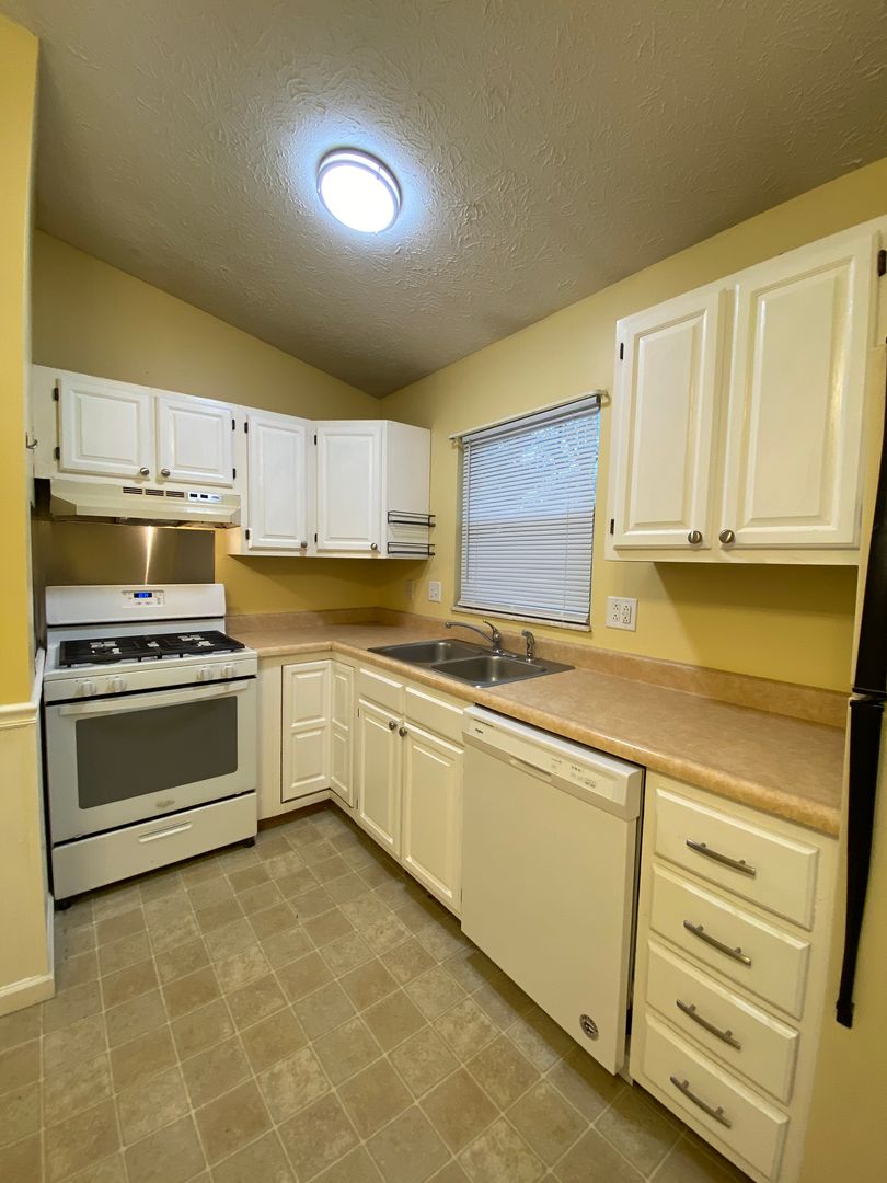 Inside, you’ll find three bedrooms and a full bathroom upstairs, and one bedroom downstairs along with a den, half bath, and washer and dryer. The kitchen features freshly repainted cabinets, a gas stove, dishwasher, and our favorite feature — the convenient lazy Susan! The back porch has also been repainted, offering a refreshed space to relax or entertain.